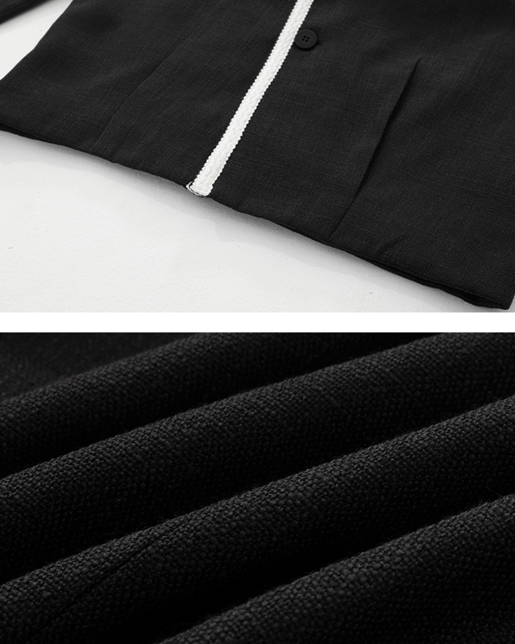 程よくコンパクトな着丈と、直線的なライン設計により、